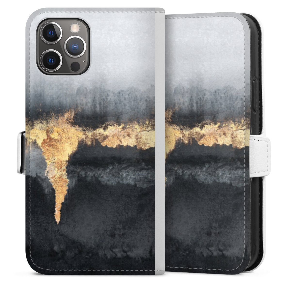 For our Sideflip Case we are using our advanced direct printing technology. The back and frontside are fully printabale, the inside of the phone bag is left unprinted. You can order the phone case without print, printed completely or also with a partial print.