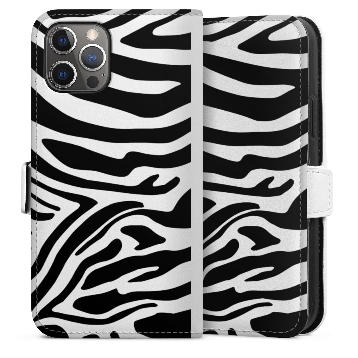 For our Sideflip Case we are using our advanced direct printing technology. The back and frontside are fully printabale, the inside of the phone bag is left unprinted. You can order the phone case without print, printed completely or also with a partial print.