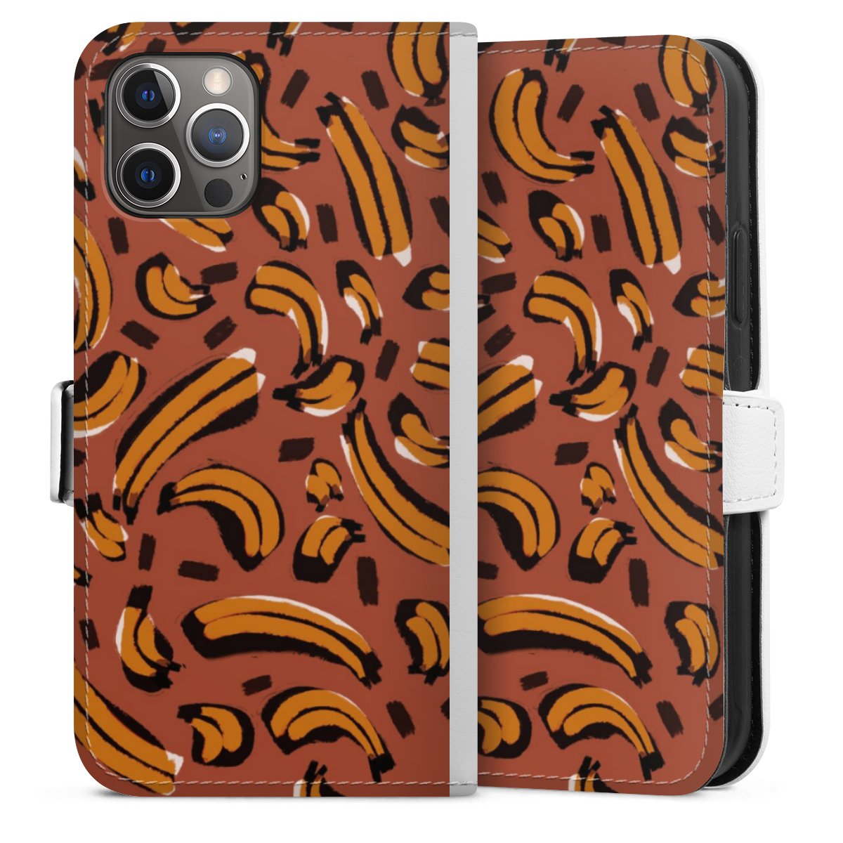 For our Sideflip Case we are using our advanced direct printing technology. The back and frontside are fully printabale, the inside of the phone bag is left unprinted. You can order the phone case without print, printed completely or also with a partial print.