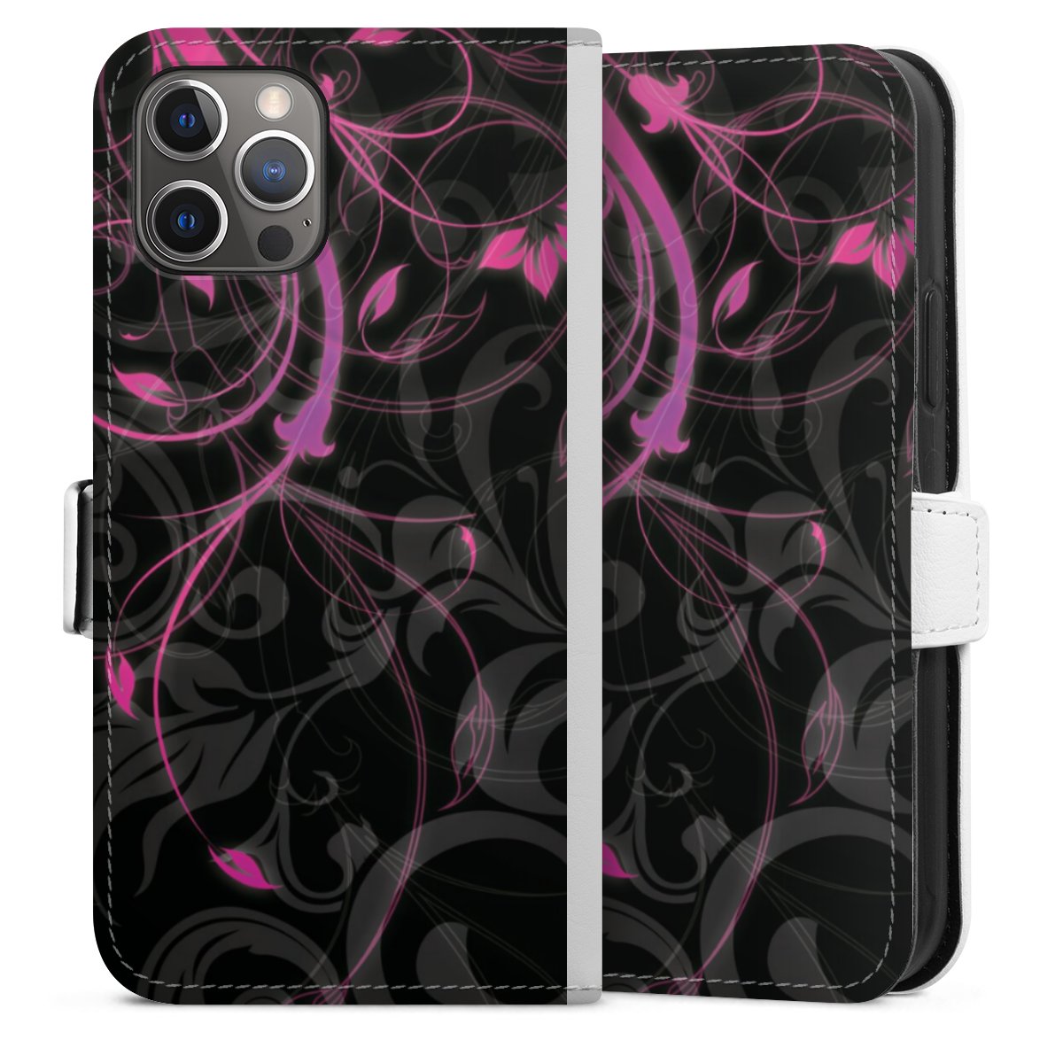 For our Sideflip Case we are using our advanced direct printing technology. The back and frontside are fully printabale, the inside of the phone bag is left unprinted. You can order the phone case without print, printed completely or also with a partial print.