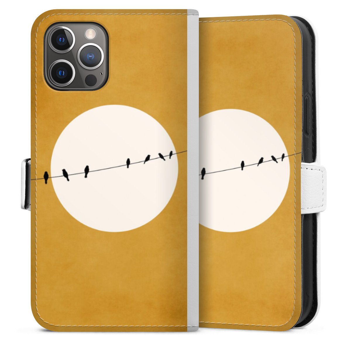 For our Sideflip Case we are using our advanced direct printing technology. The back and frontside are fully printabale, the inside of the phone bag is left unprinted. You can order the phone case without print, printed completely or also with a partial print.