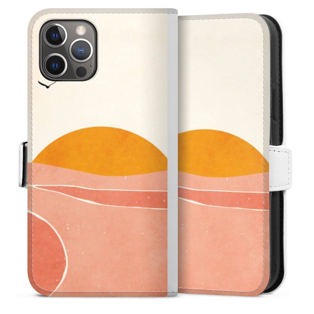 For our Sideflip Case we are using our advanced direct printing technology. The back and frontside are fully printabale, the inside of the phone bag is left unprinted. You can order the phone case without print, printed completely or also with a partial print.