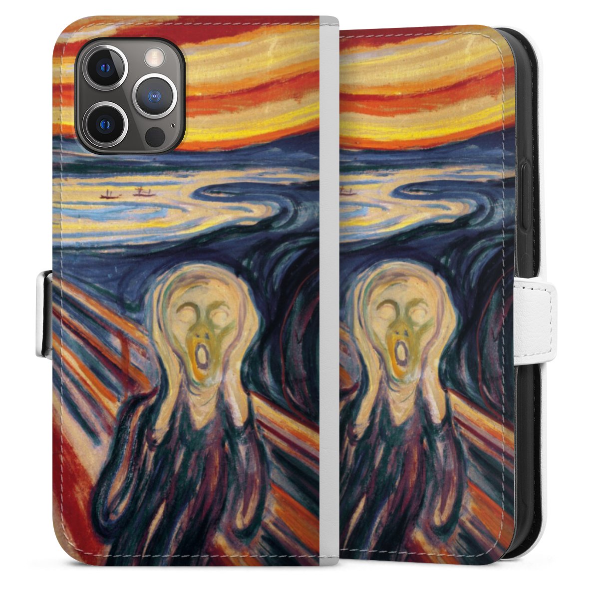 For our Sideflip Case we are using our advanced direct printing technology. The back and frontside are fully printabale, the inside of the phone bag is left unprinted. You can order the phone case without print, printed completely or also with a partial print.