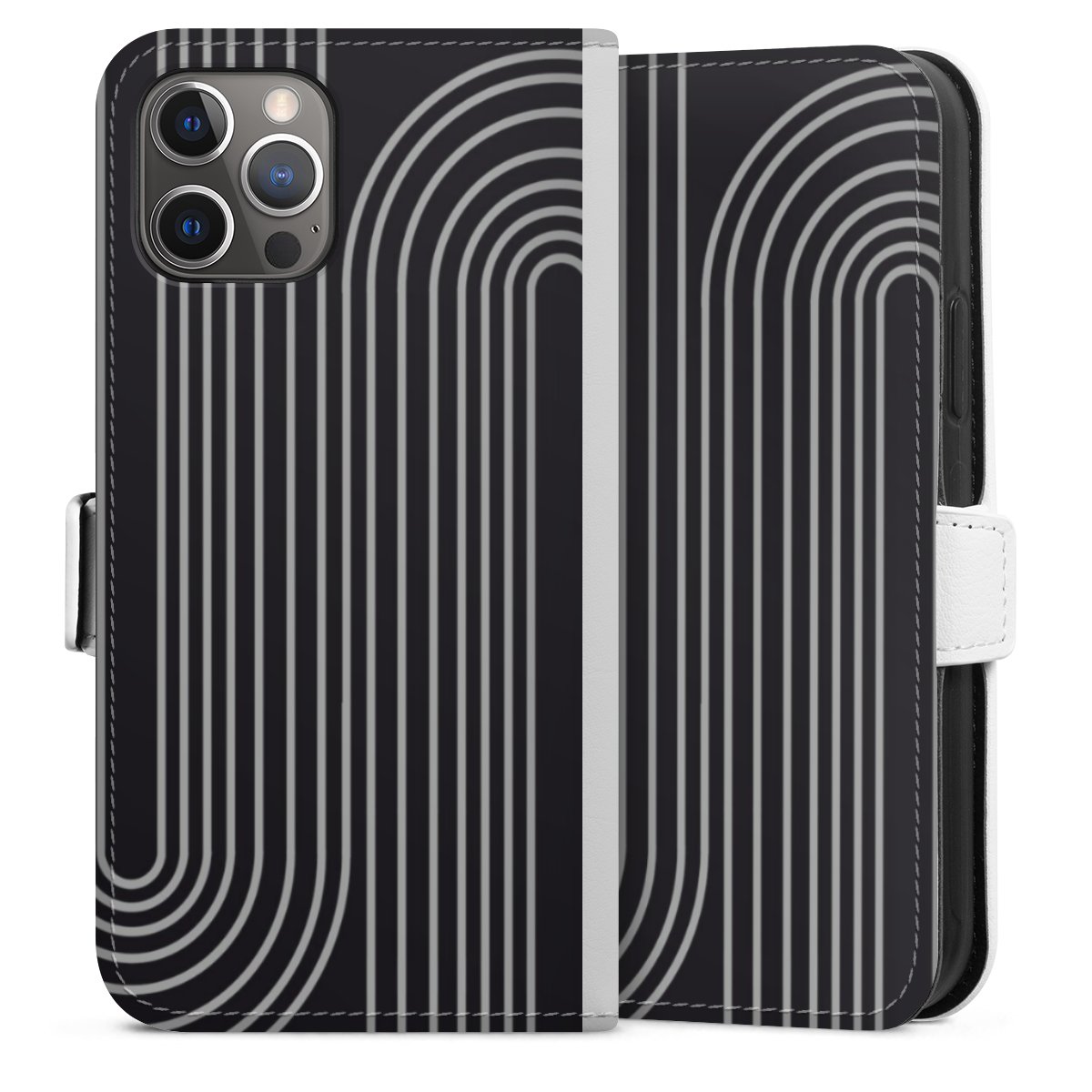 For our Sideflip Case we are using our advanced direct printing technology. The back and frontside are fully printabale, the inside of the phone bag is left unprinted. You can order the phone case without print, printed completely or also with a partial print.