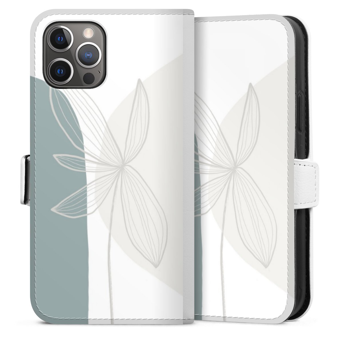 For our Sideflip Case we are using our advanced direct printing technology. The back and frontside are fully printabale, the inside of the phone bag is left unprinted. You can order the phone case without print, printed completely or also with a partial print.