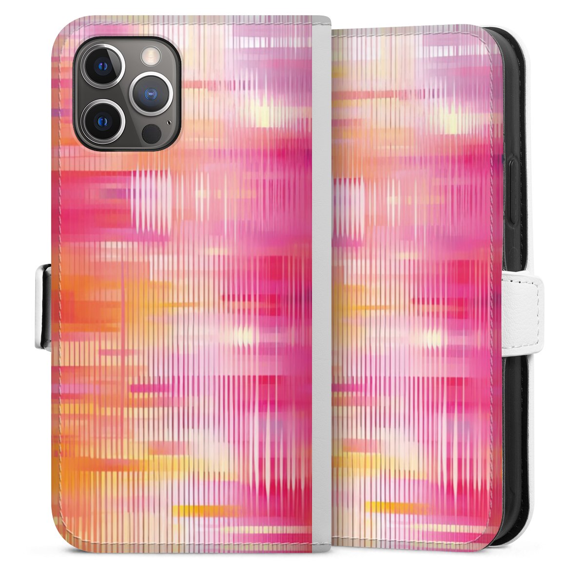 For our Sideflip Case we are using our advanced direct printing technology. The back and frontside are fully printabale, the inside of the phone bag is left unprinted. You can order the phone case without print, printed completely or also with a partial print.
