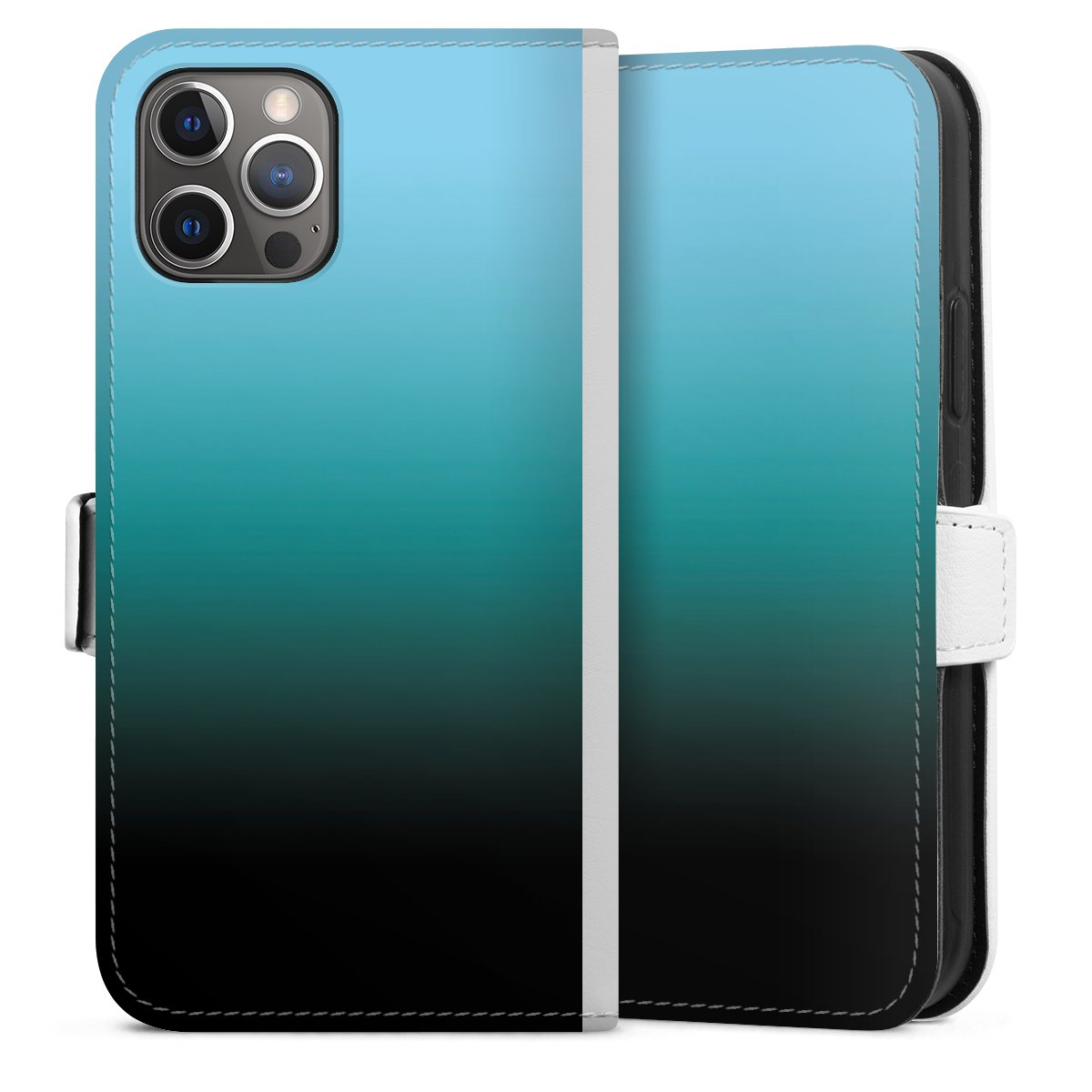 For our Sideflip Case we are using our advanced direct printing technology. The back and frontside are fully printabale, the inside of the phone bag is left unprinted. You can order the phone case without print, printed completely or also with a partial print.