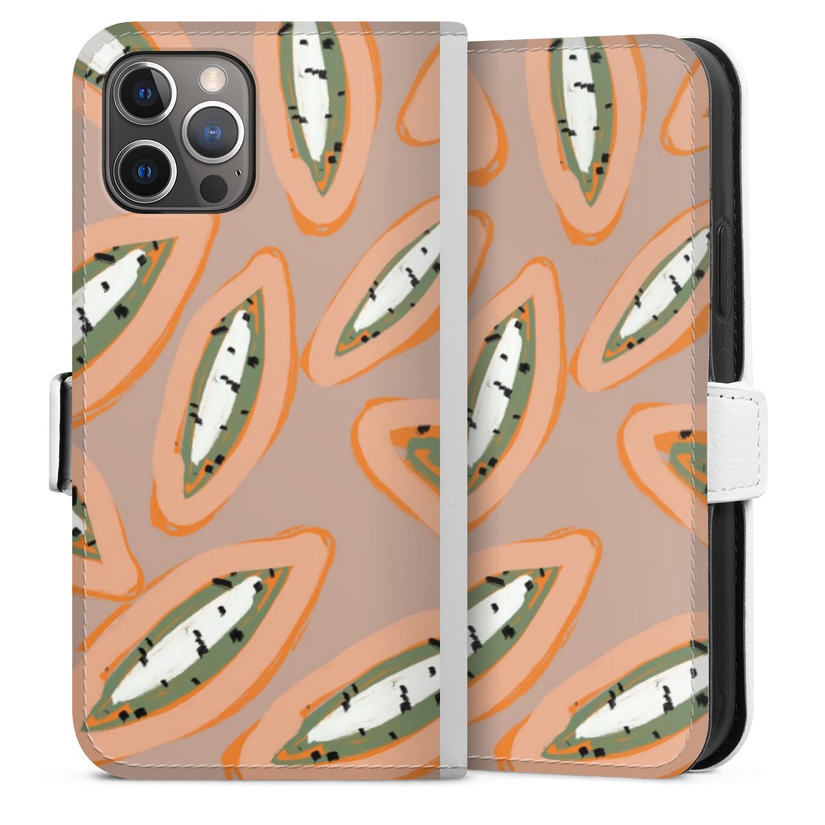 For our Sideflip Case we are using our advanced direct printing technology. The back and frontside are fully printabale, the inside of the phone bag is left unprinted. You can order the phone case without print, printed completely or also with a partial print.