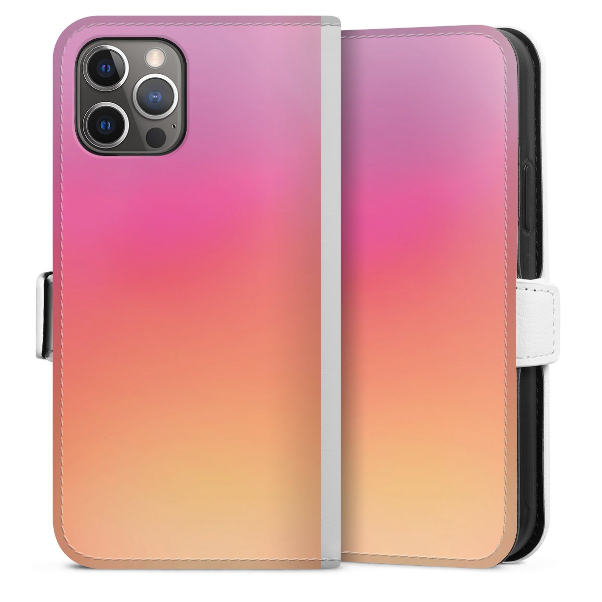 For our Sideflip Case we are using our advanced direct printing technology. The back and frontside are fully printabale, the inside of the phone bag is left unprinted. You can order the phone case without print, printed completely or also with a partial print.