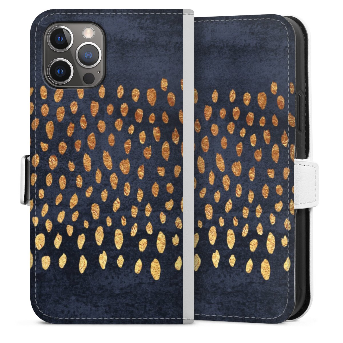 For our Sideflip Case we are using our advanced direct printing technology. The back and frontside are fully printabale, the inside of the phone bag is left unprinted. You can order the phone case without print, printed completely or also with a partial print.