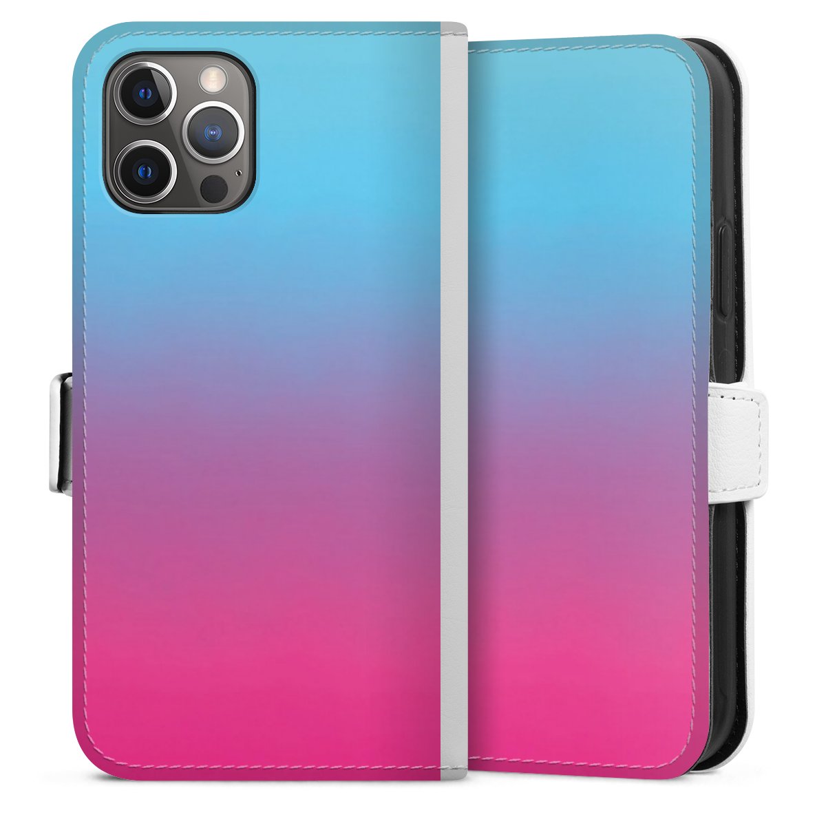 For our Sideflip Case we are using our advanced direct printing technology. The back and frontside are fully printabale, the inside of the phone bag is left unprinted. You can order the phone case without print, printed completely or also with a partial print.