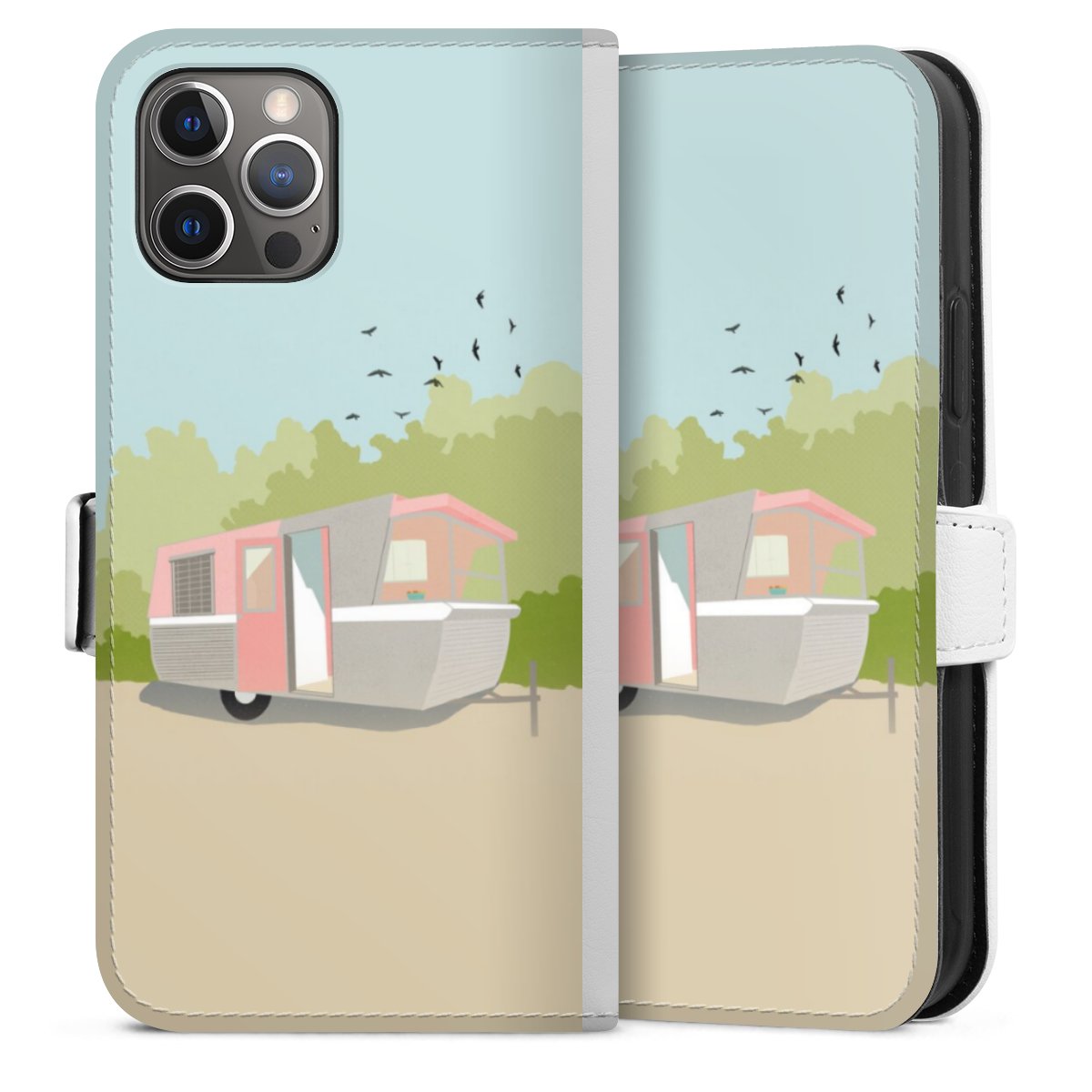 For our Sideflip Case we are using our advanced direct printing technology. The back and frontside are fully printabale, the inside of the phone bag is left unprinted. You can order the phone case without print, printed completely or also with a partial print.