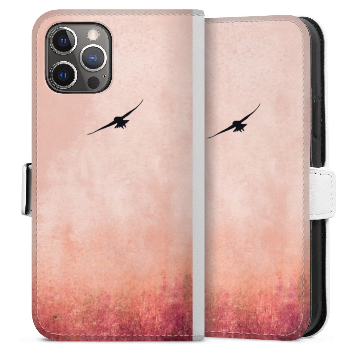 For our Sideflip Case we are using our advanced direct printing technology. The back and frontside are fully printabale, the inside of the phone bag is left unprinted. You can order the phone case without print, printed completely or also with a partial print.