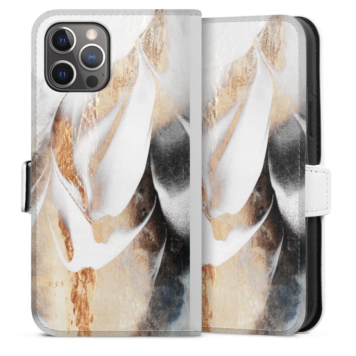 For our Sideflip Case we are using our advanced direct printing technology. The back and frontside are fully printabale, the inside of the phone bag is left unprinted. You can order the phone case without print, printed completely or also with a partial print.