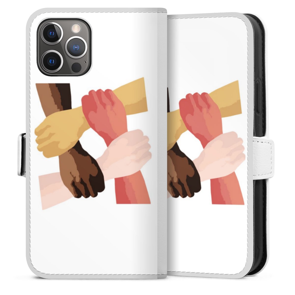 For our Sideflip Case we are using our advanced direct printing technology. The back and frontside are fully printabale, the inside of the phone bag is left unprinted. You can order the phone case without print, printed completely or also with a partial print.