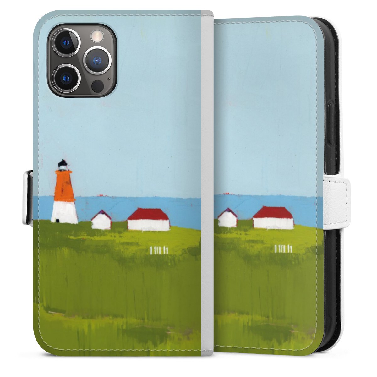For our Sideflip Case we are using our advanced direct printing technology. The back and frontside are fully printabale, the inside of the phone bag is left unprinted. You can order the phone case without print, printed completely or also with a partial print.