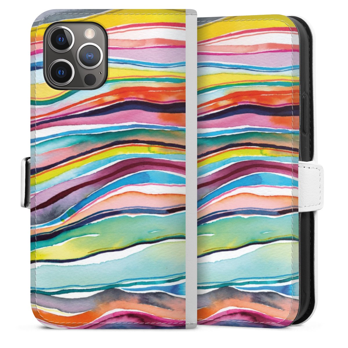 For our Sideflip Case we are using our advanced direct printing technology. The back and frontside are fully printabale, the inside of the phone bag is left unprinted. You can order the phone case without print, printed completely or also with a partial print.