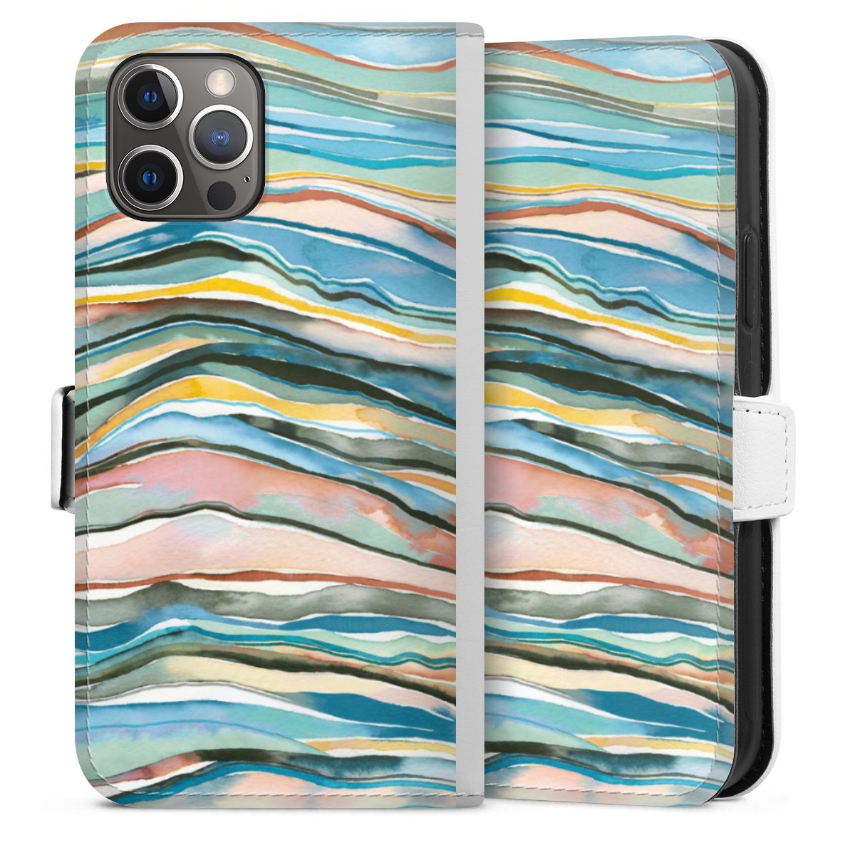 For our Sideflip Case we are using our advanced direct printing technology. The back and frontside are fully printabale, the inside of the phone bag is left unprinted. You can order the phone case without print, printed completely or also with a partial print.