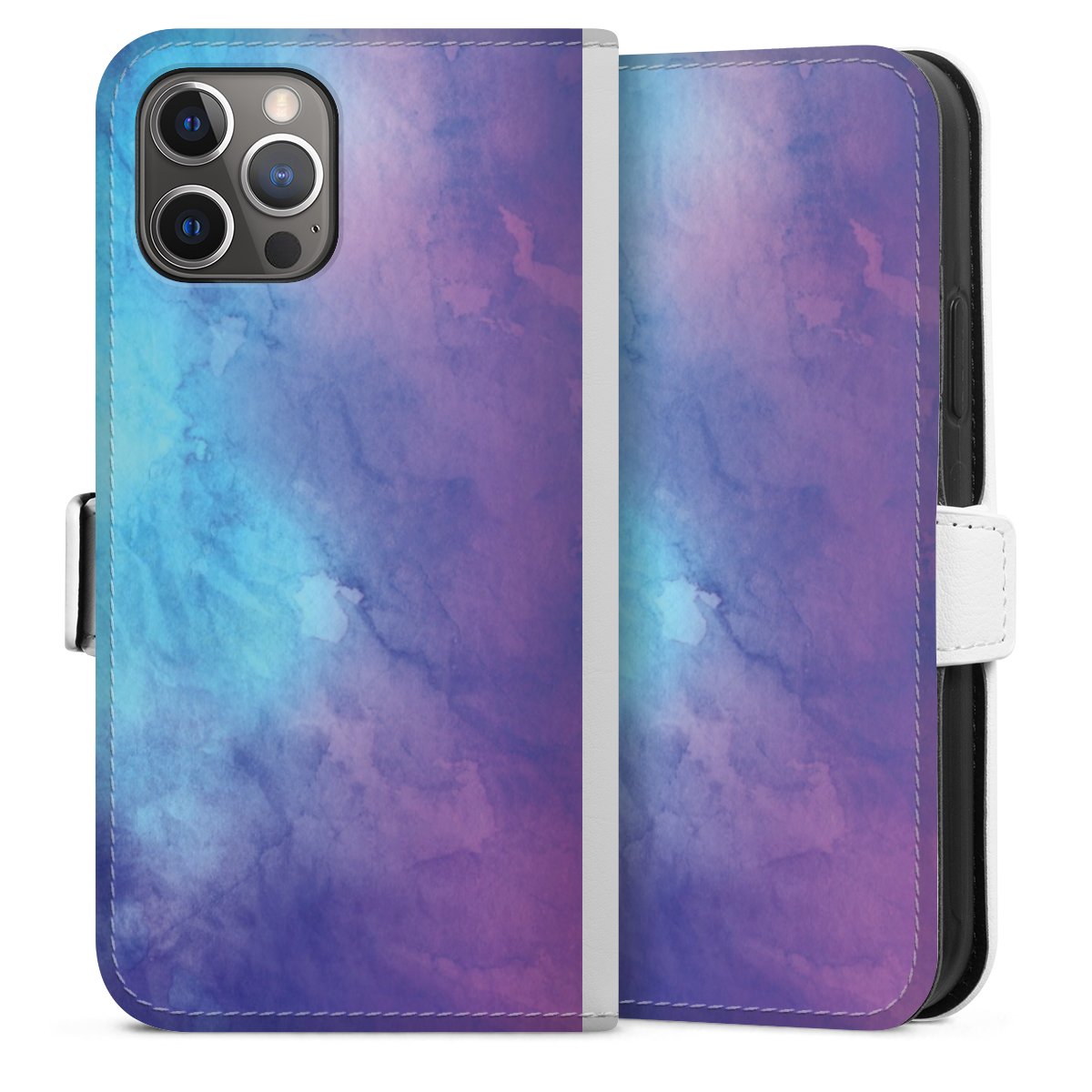 For our Sideflip Case we are using our advanced direct printing technology. The back and frontside are fully printabale, the inside of the phone bag is left unprinted. You can order the phone case without print, printed completely or also with a partial print.