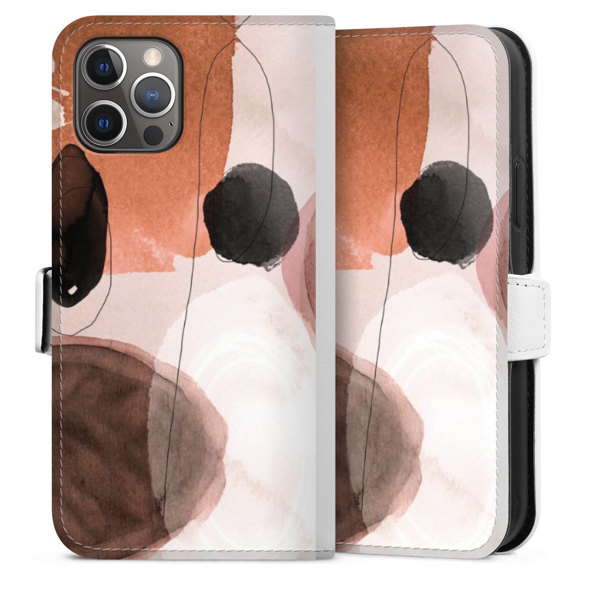 For our Sideflip Case we are using our advanced direct printing technology. The back and frontside are fully printabale, the inside of the phone bag is left unprinted. You can order the phone case without print, printed completely or also with a partial print.