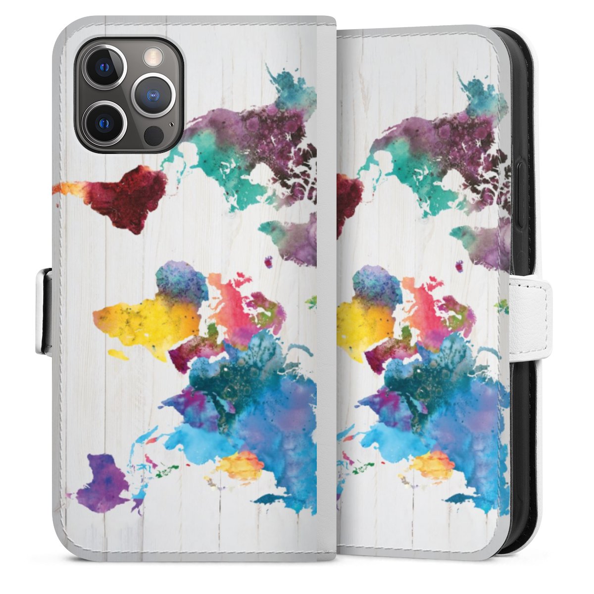 For our Sideflip Case we are using our advanced direct printing technology. The back and frontside are fully printabale, the inside of the phone bag is left unprinted. You can order the phone case without print, printed completely or also with a partial print.