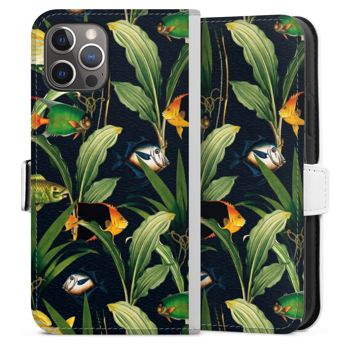 For our Sideflip Case we are using our advanced direct printing technology. The back and frontside are fully printabale, the inside of the phone bag is left unprinted. You can order the phone case without print, printed completely or also with a partial print.