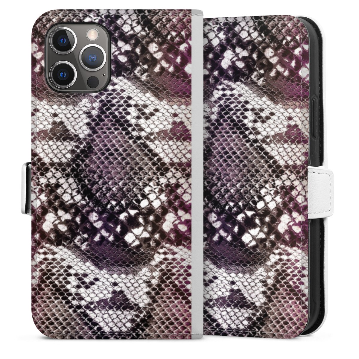 For our Sideflip Case we are using our advanced direct printing technology. The back and frontside are fully printabale, the inside of the phone bag is left unprinted. You can order the phone case without print, printed completely or also with a partial print.