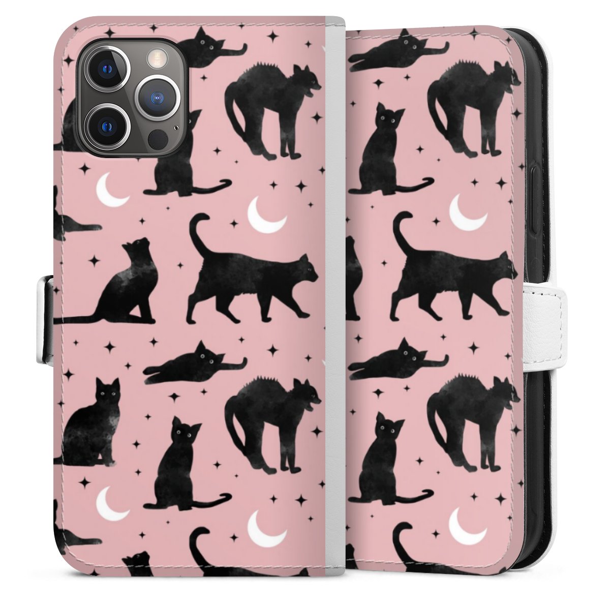 For our Sideflip Case we are using our advanced direct printing technology. The back and frontside are fully printabale, the inside of the phone bag is left unprinted. You can order the phone case without print, printed completely or also with a partial print.