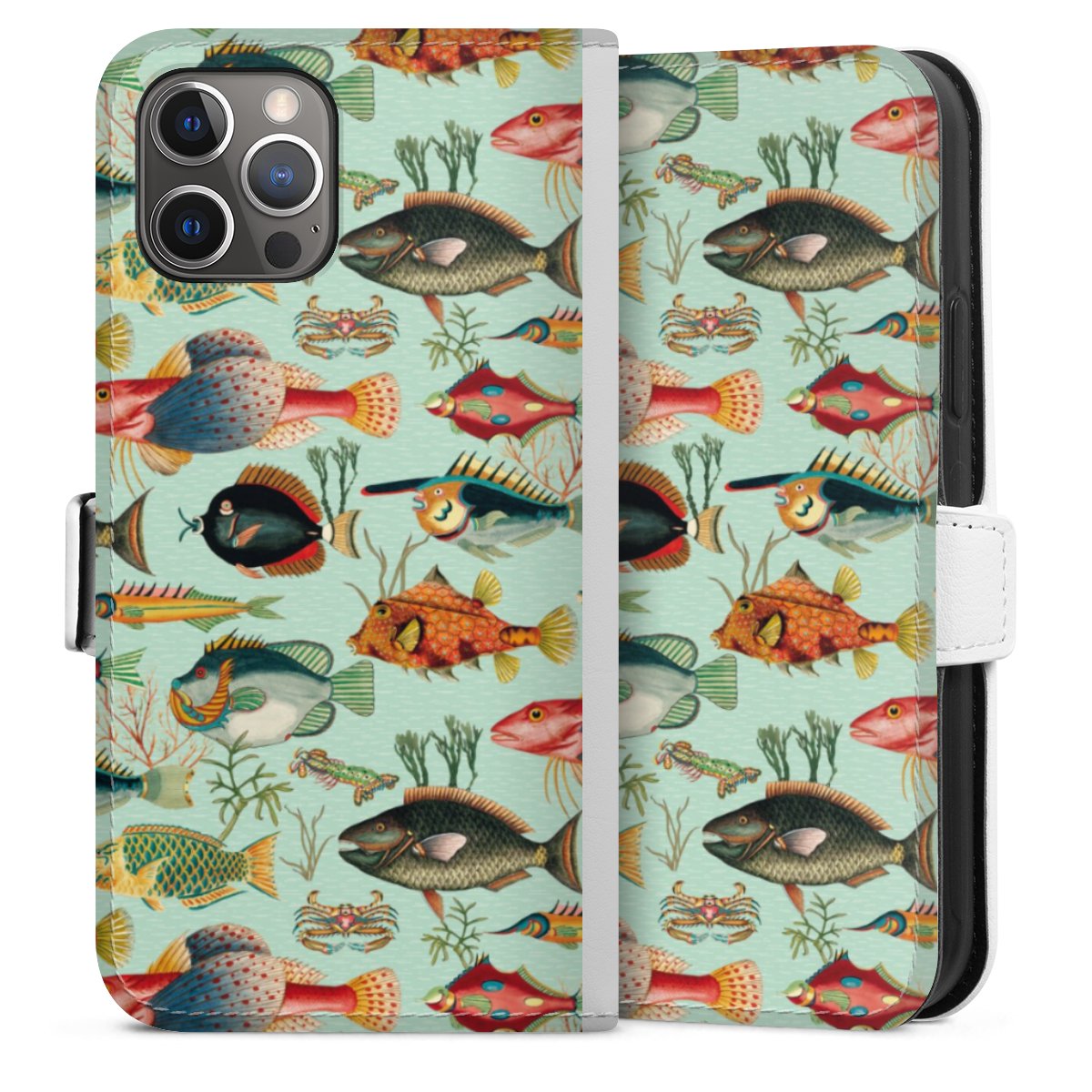 For our Sideflip Case we are using our advanced direct printing technology. The back and frontside are fully printabale, the inside of the phone bag is left unprinted. You can order the phone case without print, printed completely or also with a partial print.