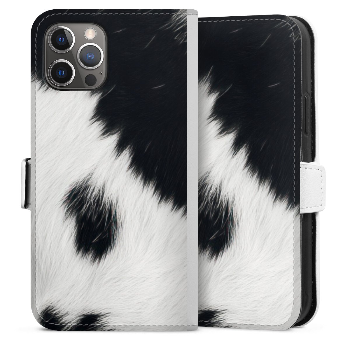 For our Sideflip Case we are using our advanced direct printing technology. The back and frontside are fully printabale, the inside of the phone bag is left unprinted. You can order the phone case without print, printed completely or also with a partial print.