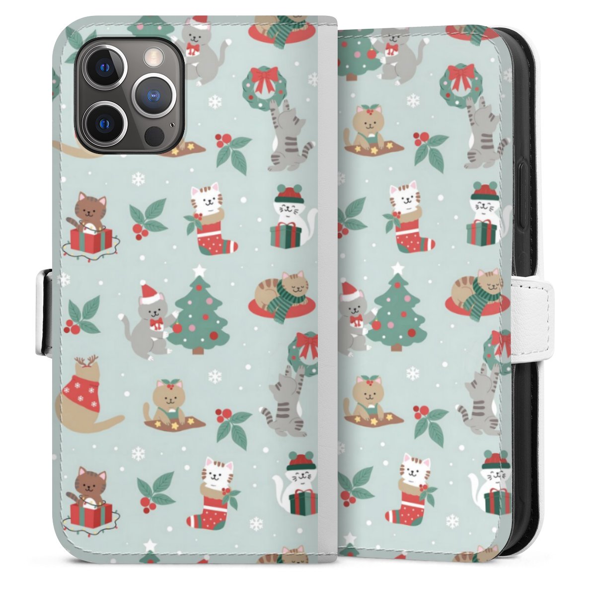 Cute Winter Wonderland Christmas Festive Cats on Teal