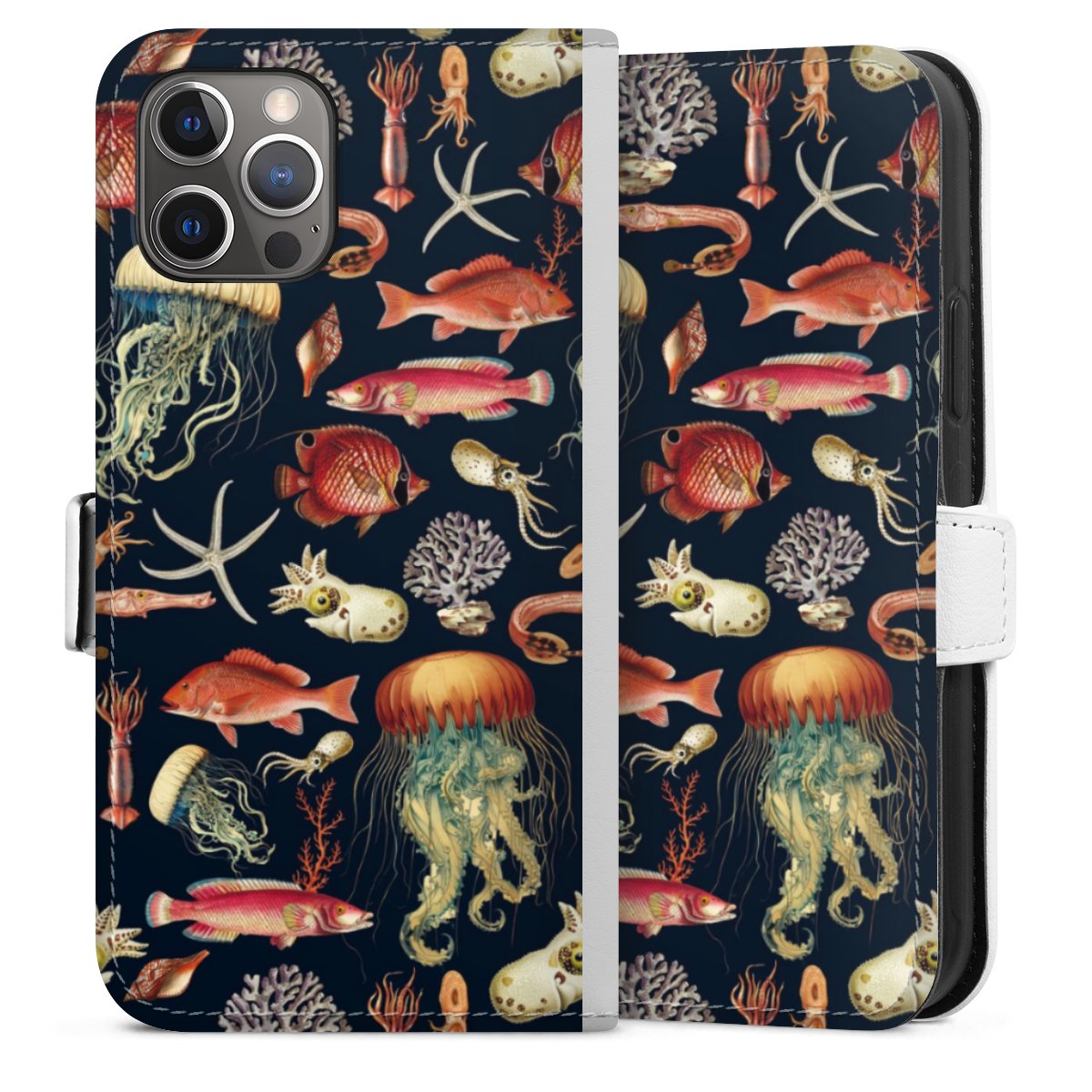 For our Sideflip Case we are using our advanced direct printing technology. The back and frontside are fully printabale, the inside of the phone bag is left unprinted. You can order the phone case without print, printed completely or also with a partial print.