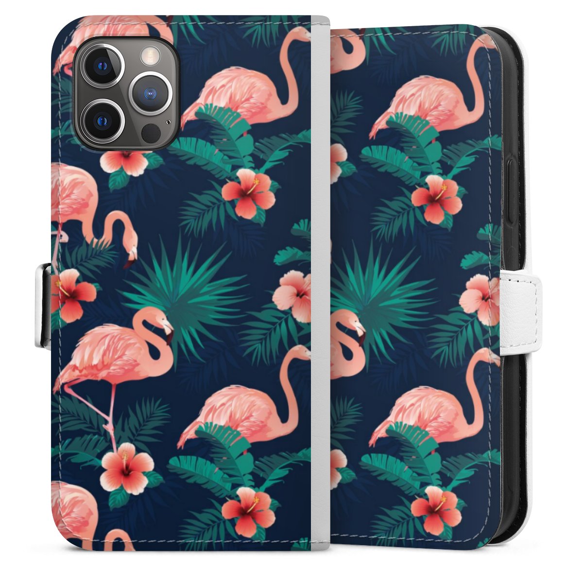 For our Sideflip Case we are using our advanced direct printing technology. The back and frontside are fully printabale, the inside of the phone bag is left unprinted. You can order the phone case without print, printed completely or also with a partial print.
