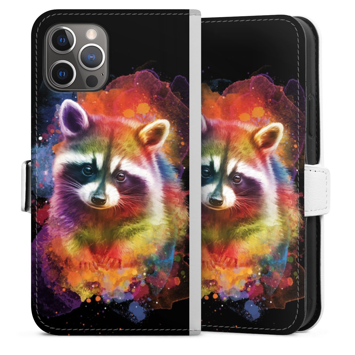 For our Sideflip Case we are using our advanced direct printing technology. The back and frontside are fully printabale, the inside of the phone bag is left unprinted. You can order the phone case without print, printed completely or also with a partial print.