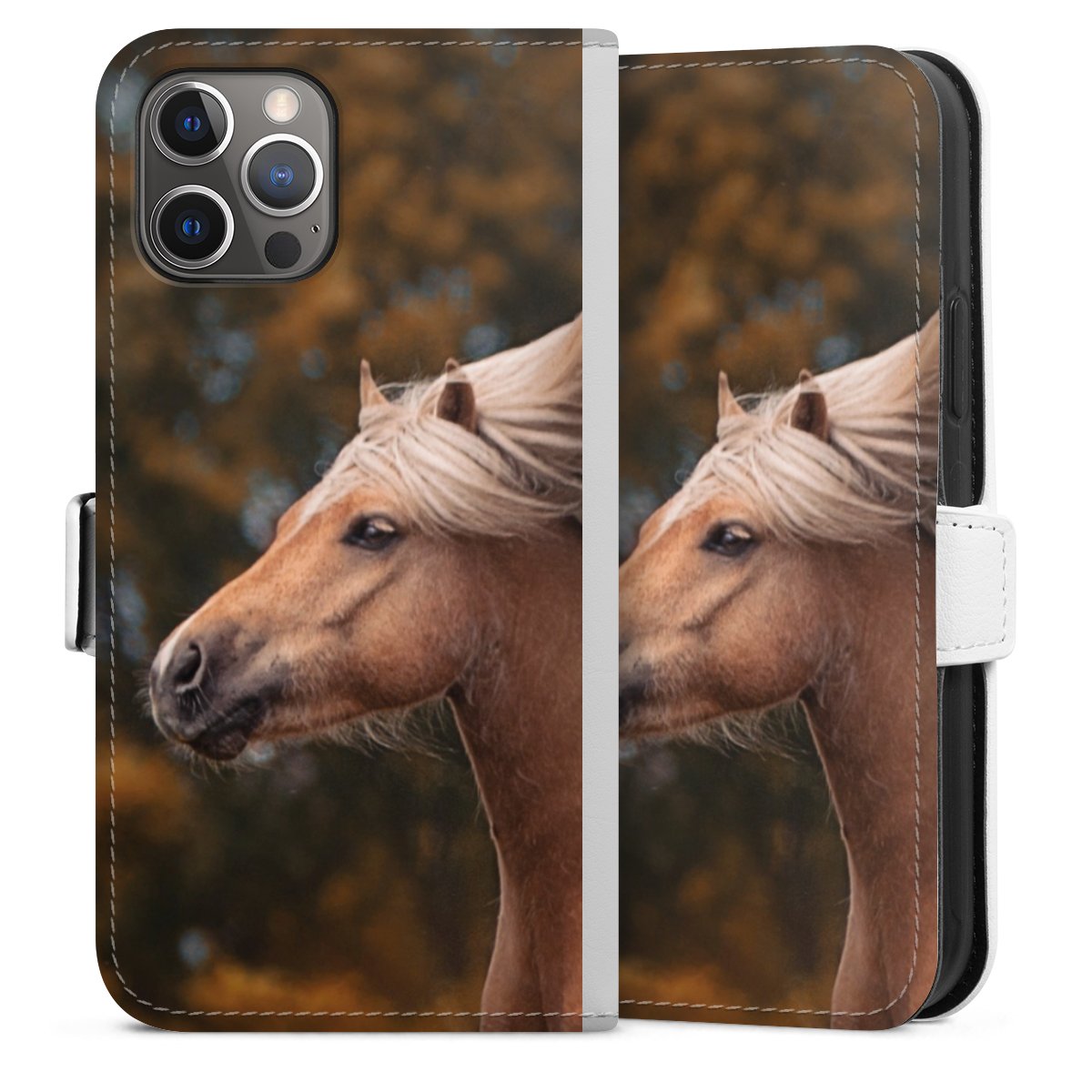 For our Sideflip Case we are using our advanced direct printing technology. The back and frontside are fully printabale, the inside of the phone bag is left unprinted. You can order the phone case without print, printed completely or also with a partial print.