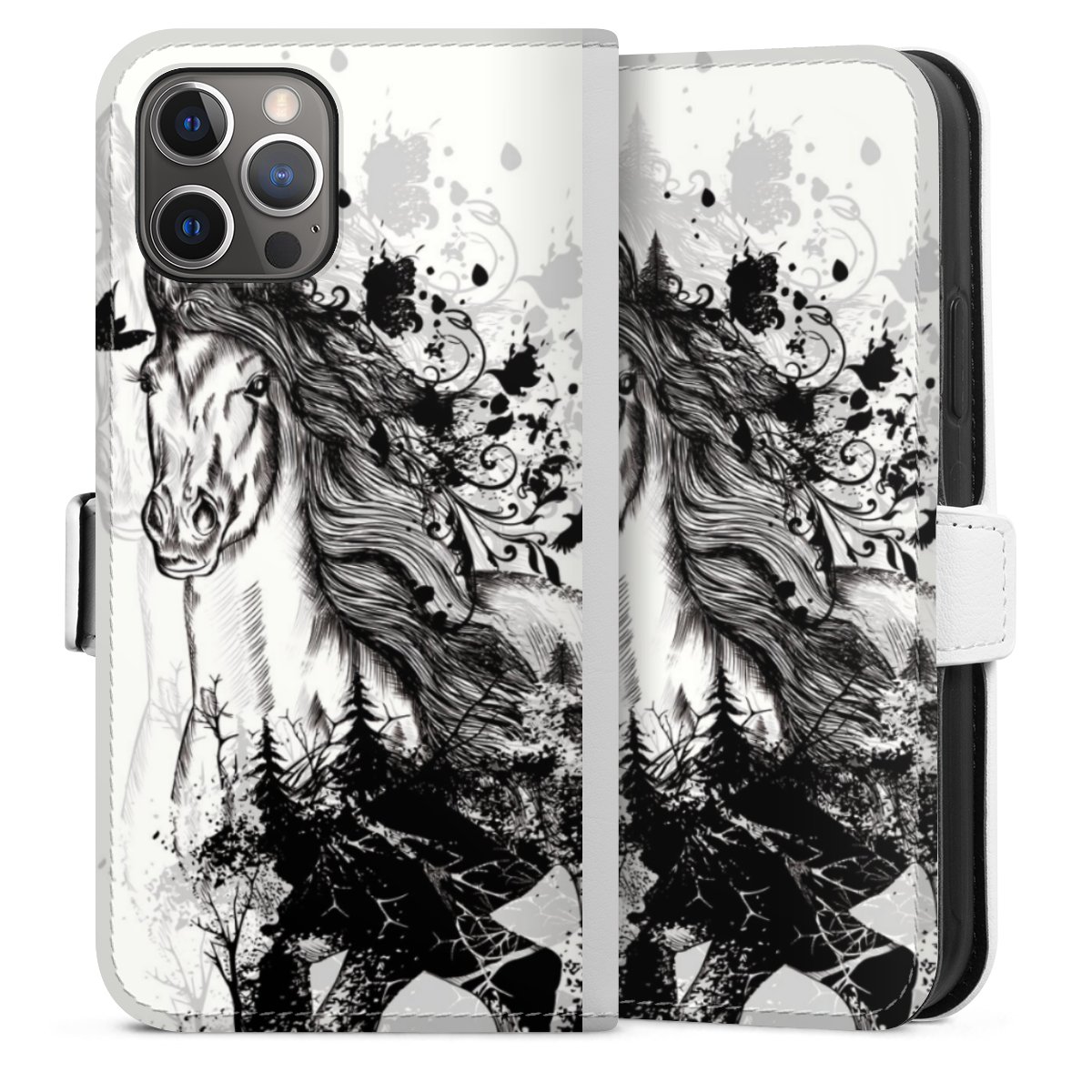 For our Sideflip Case we are using our advanced direct printing technology. The back and frontside are fully printabale, the inside of the phone bag is left unprinted. You can order the phone case without print, printed completely or also with a partial print.