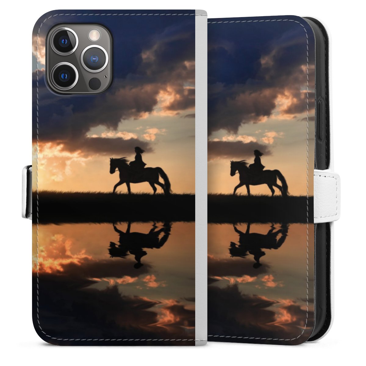 For our Sideflip Case we are using our advanced direct printing technology. The back and frontside are fully printabale, the inside of the phone bag is left unprinted. You can order the phone case without print, printed completely or also with a partial print.