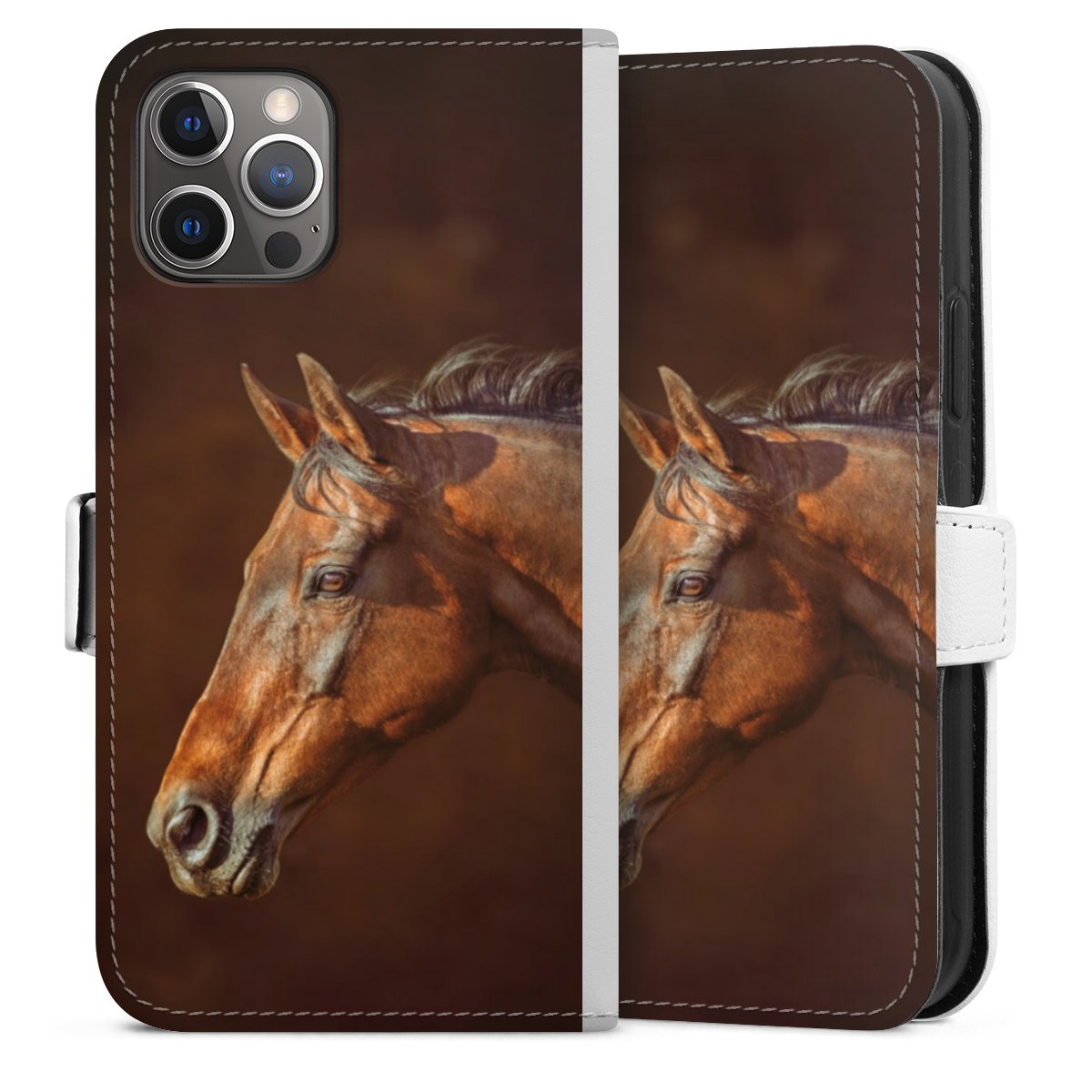 For our Sideflip Case we are using our advanced direct printing technology. The back and frontside are fully printabale, the inside of the phone bag is left unprinted. You can order the phone case without print, printed completely or also with a partial print.