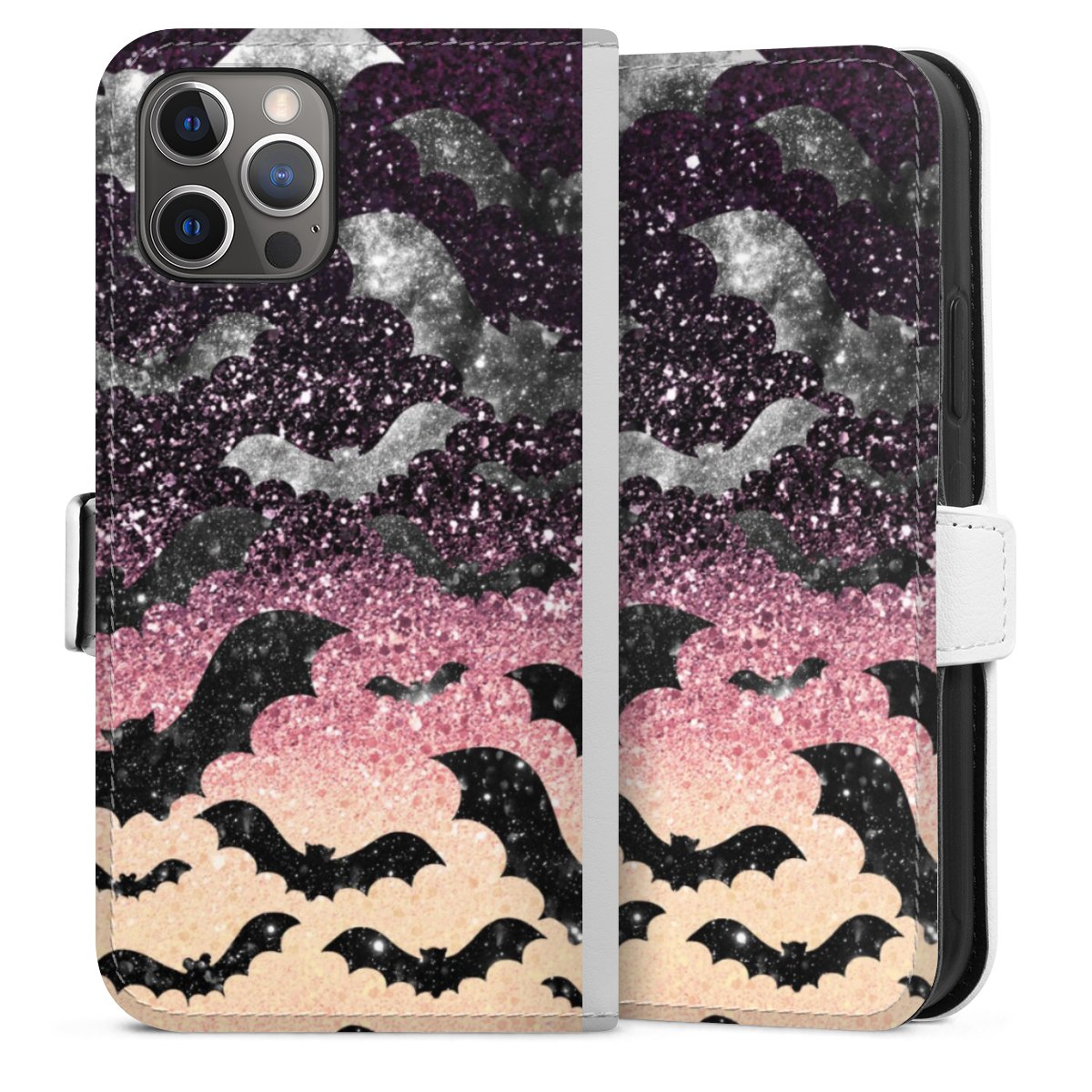 For our Sideflip Case we are using our advanced direct printing technology. The back and frontside are fully printabale, the inside of the phone bag is left unprinted. You can order the phone case without print, printed completely or also with a partial print.