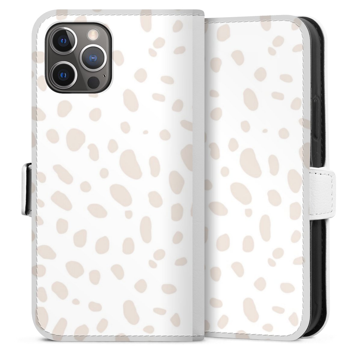 For our Sideflip Case we are using our advanced direct printing technology. The back and frontside are fully printabale, the inside of the phone bag is left unprinted. You can order the phone case without print, printed completely or also with a partial print.
