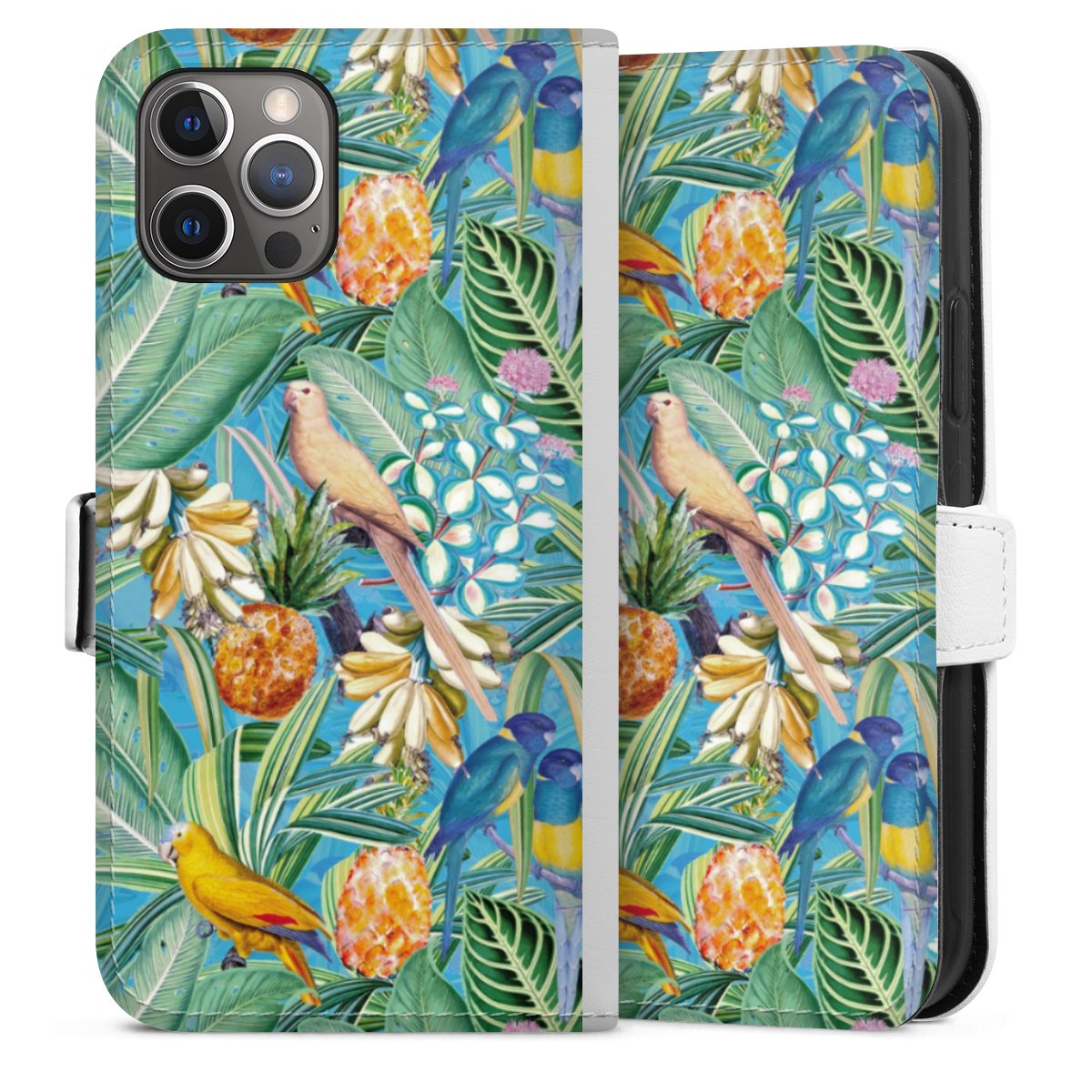 For our Sideflip Case we are using our advanced direct printing technology. The back and frontside are fully printabale, the inside of the phone bag is left unprinted. You can order the phone case without print, printed completely or also with a partial print.