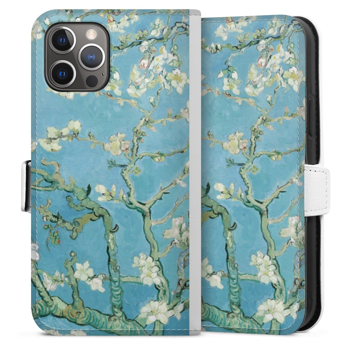 For our Sideflip Case we are using our advanced direct printing technology. The back and frontside are fully printabale, the inside of the phone bag is left unprinted. You can order the phone case without print, printed completely or also with a partial print.