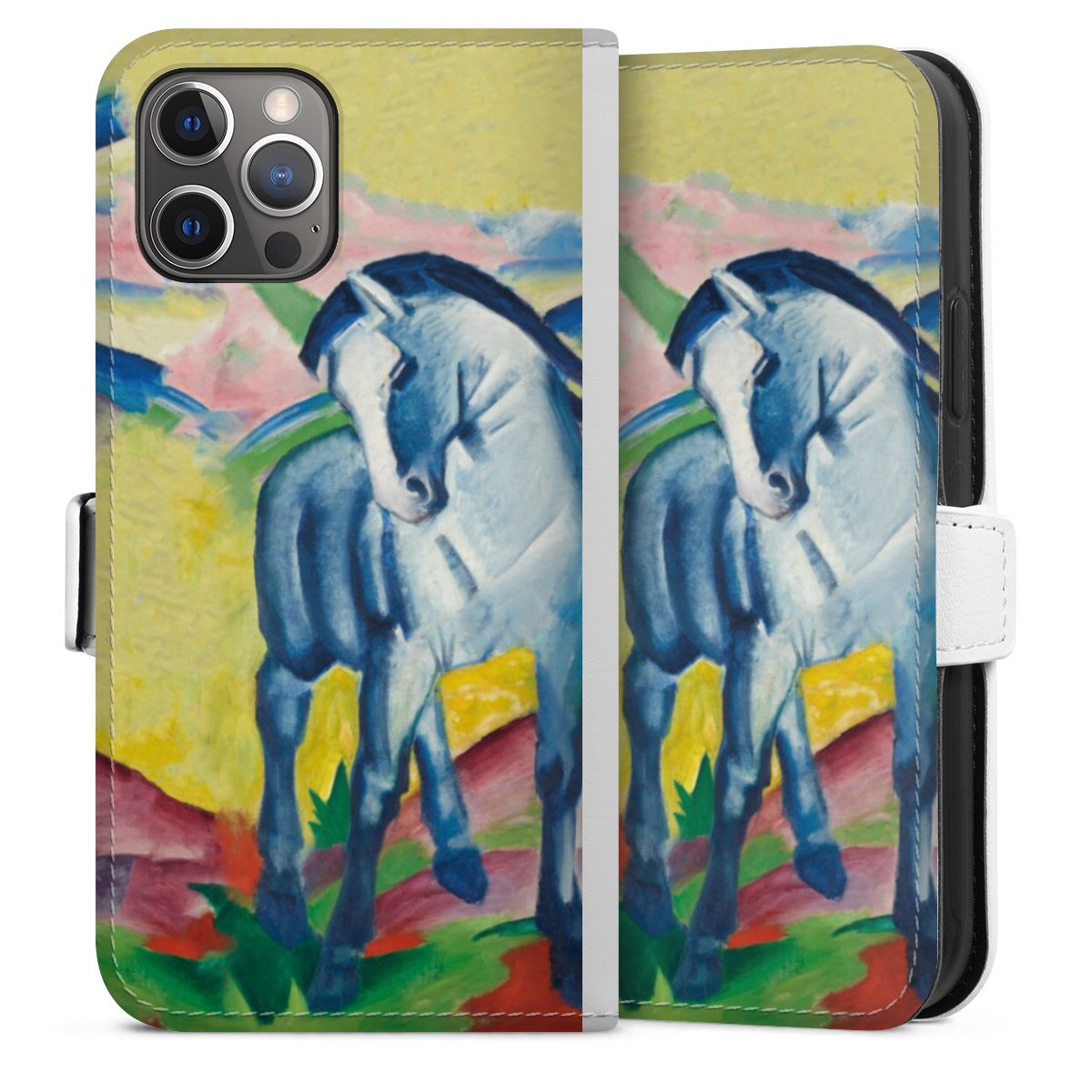 For our Sideflip Case we are using our advanced direct printing technology. The back and frontside are fully printabale, the inside of the phone bag is left unprinted. You can order the phone case without print, printed completely or also with a partial print.