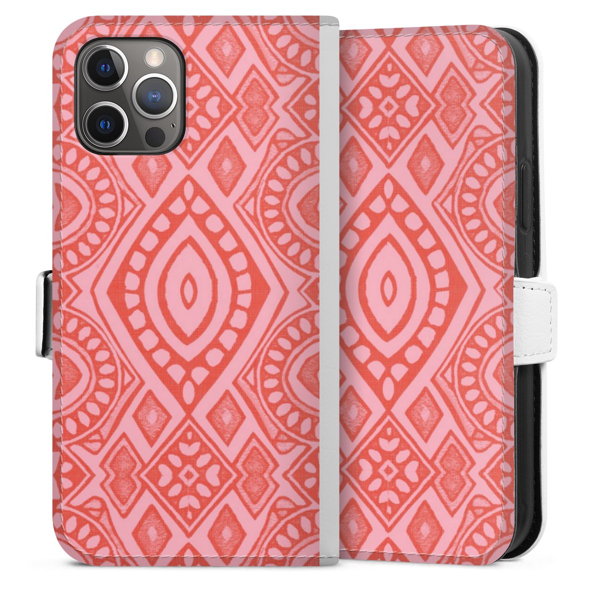 For our Sideflip Case we are using our advanced direct printing technology. The back and frontside are fully printabale, the inside of the phone bag is left unprinted. You can order the phone case without print, printed completely or also with a partial print.