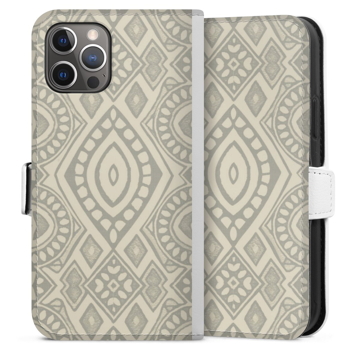 For our Sideflip Case we are using our advanced direct printing technology. The back and frontside are fully printabale, the inside of the phone bag is left unprinted. You can order the phone case without print, printed completely or also with a partial print.