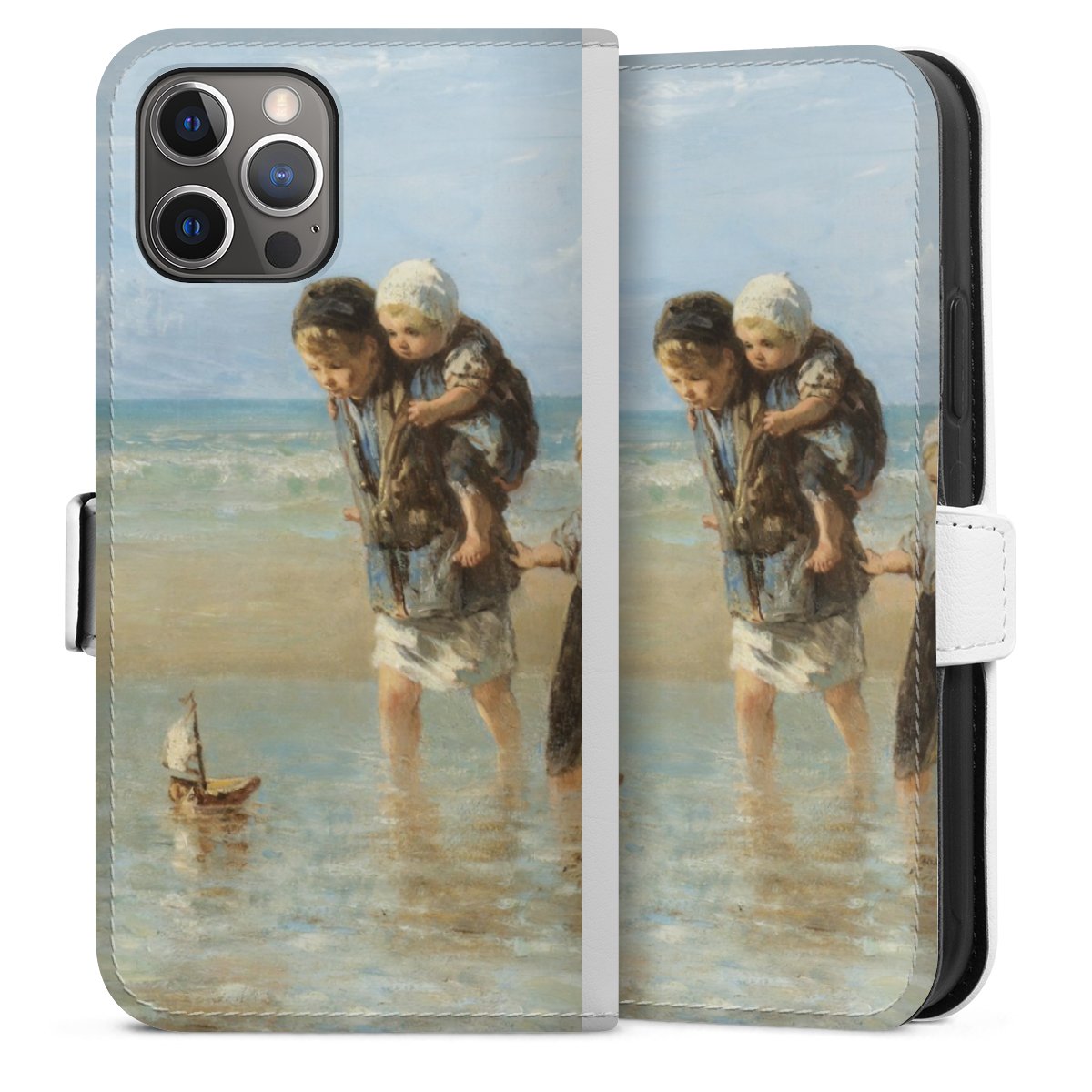 For our Sideflip Case we are using our advanced direct printing technology. The back and frontside are fully printabale, the inside of the phone bag is left unprinted. You can order the phone case without print, printed completely or also with a partial print.