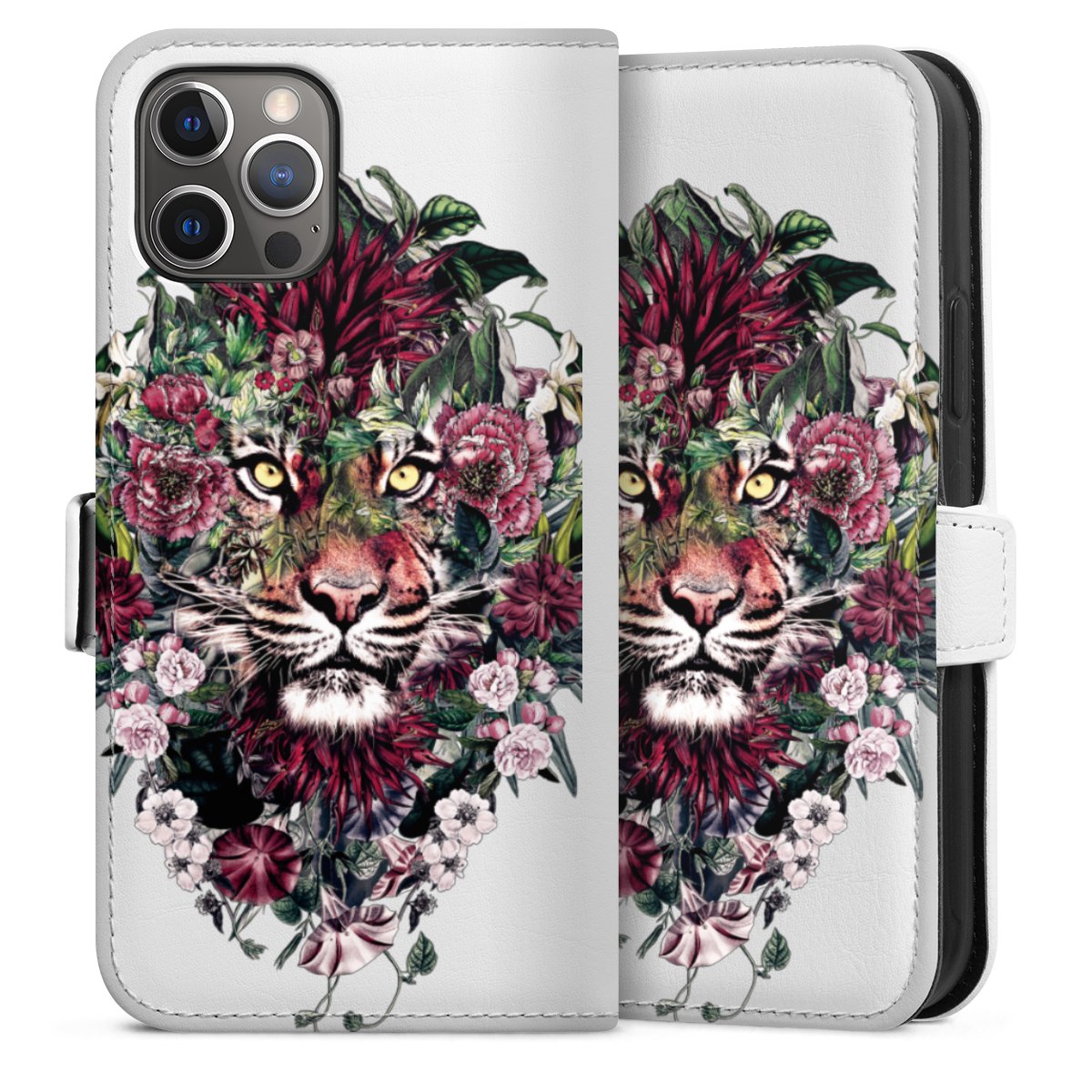 For our Sideflip Case we are using our advanced direct printing technology. The back and frontside are fully printabale, the inside of the phone bag is left unprinted. You can order the phone case without print, printed completely or also with a partial print.