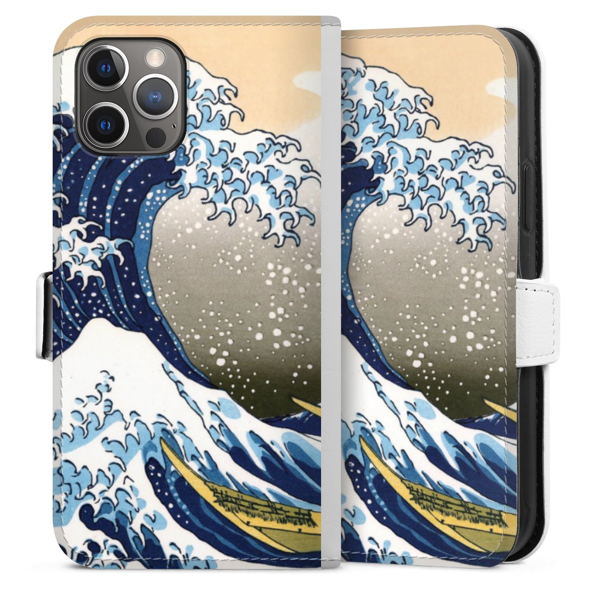 For our Sideflip Case we are using our advanced direct printing technology. The back and frontside are fully printabale, the inside of the phone bag is left unprinted. You can order the phone case without print, printed completely or also with a partial print.