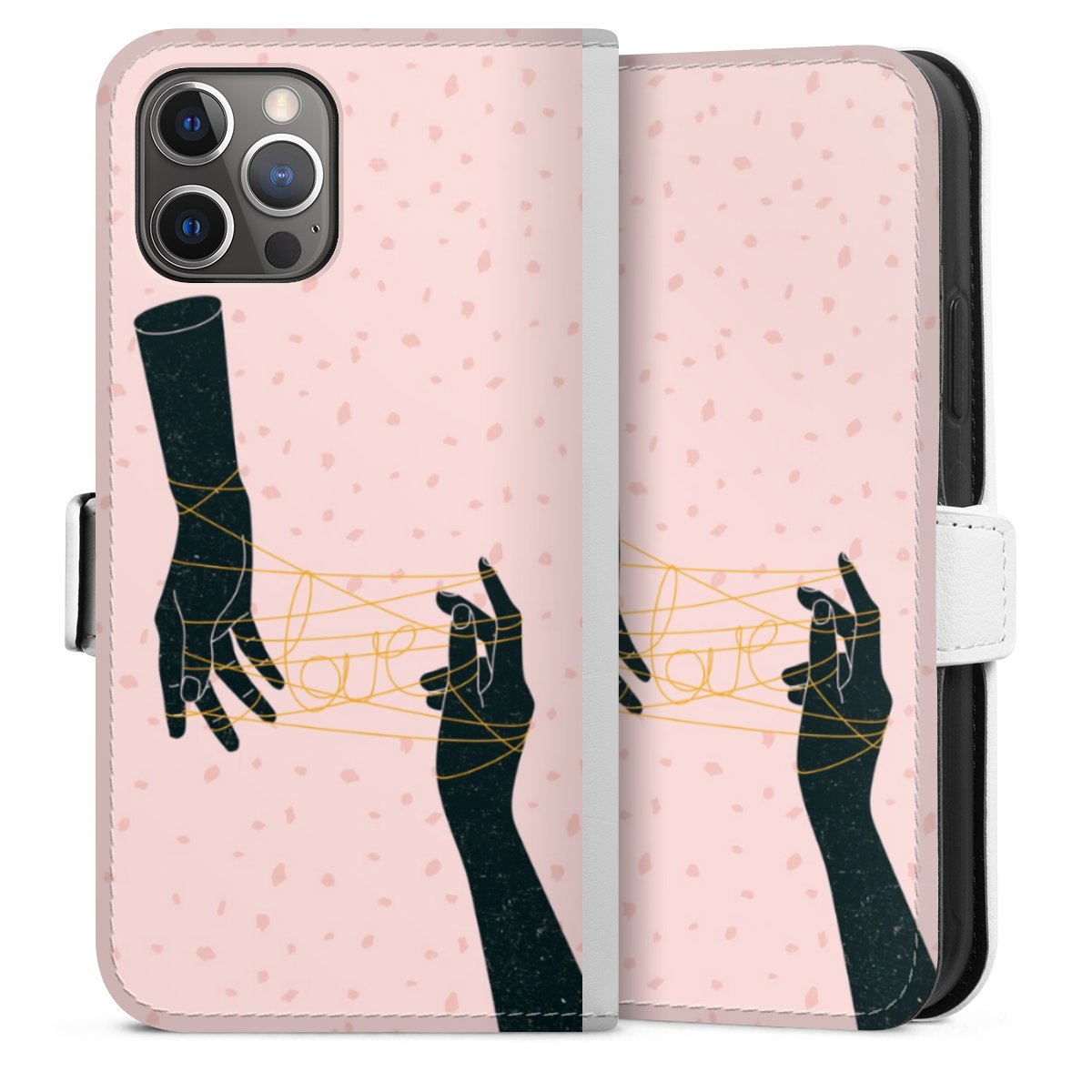 For our Sideflip Case we are using our advanced direct printing technology. The back and frontside are fully printabale, the inside of the phone bag is left unprinted. You can order the phone case without print, printed completely or also with a partial print.