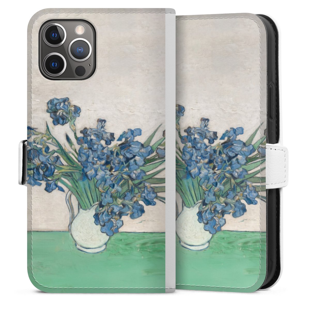 For our Sideflip Case we are using our advanced direct printing technology. The back and frontside are fully printabale, the inside of the phone bag is left unprinted. You can order the phone case without print, printed completely or also with a partial print.